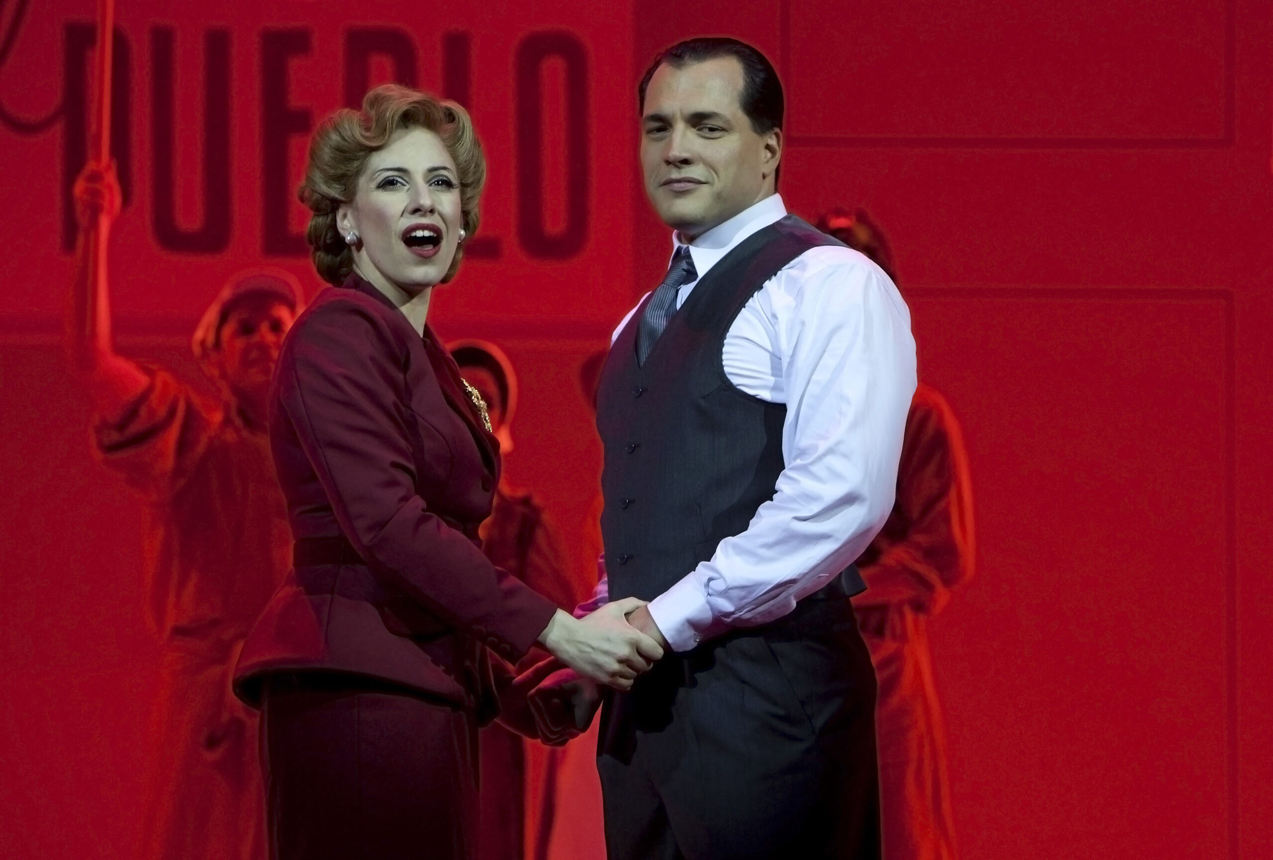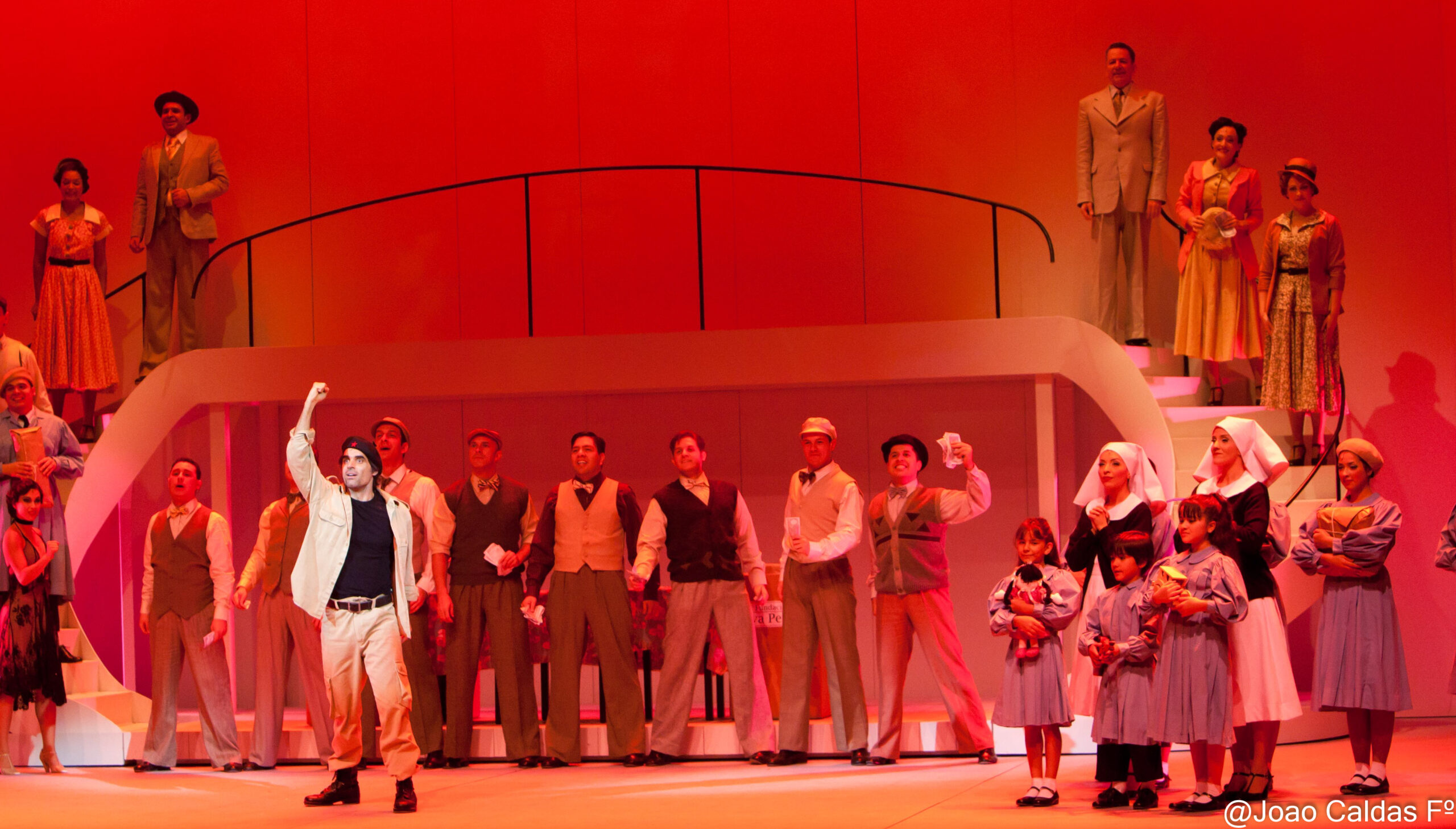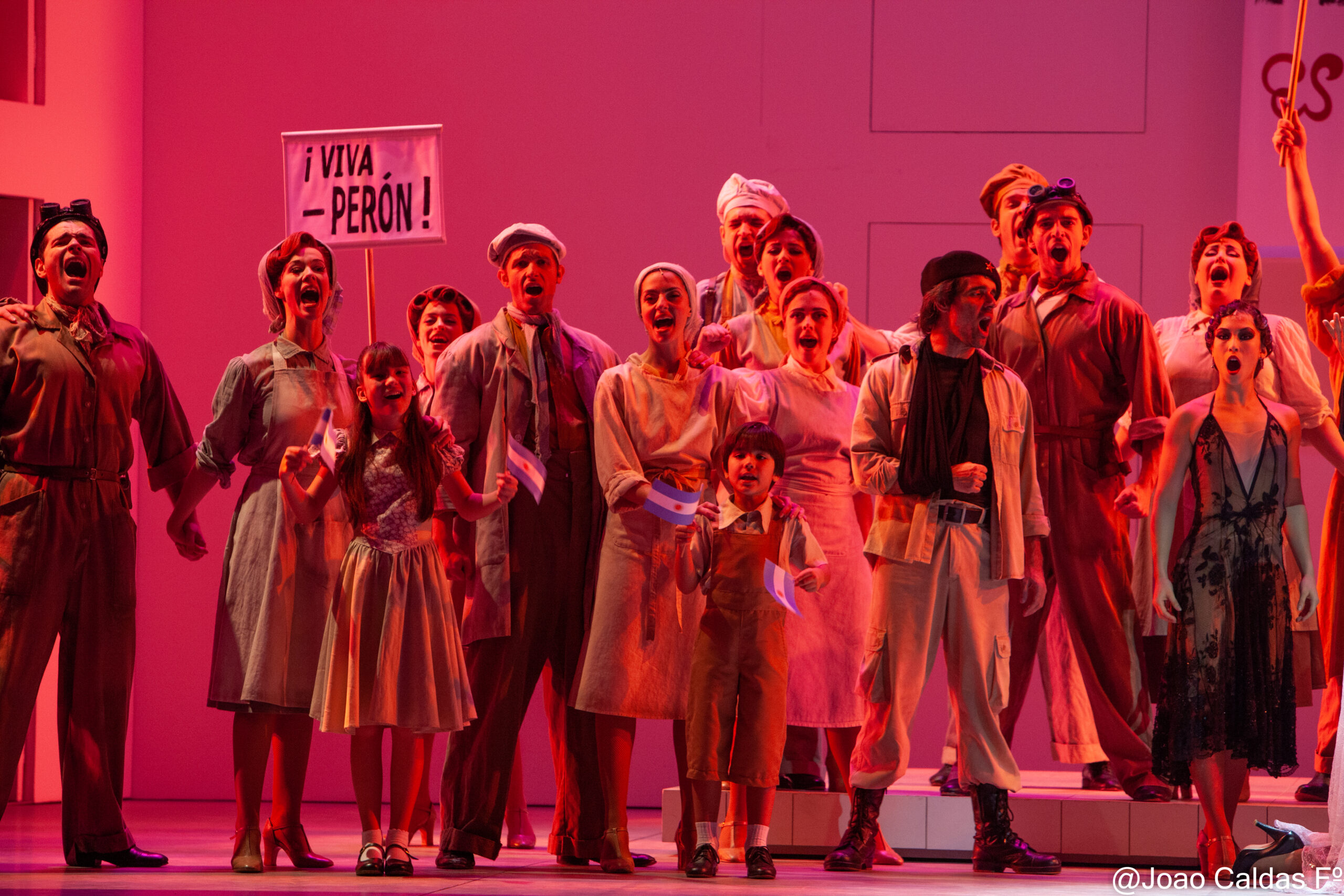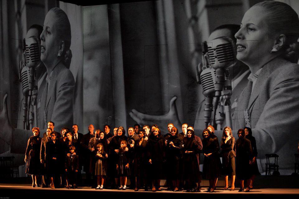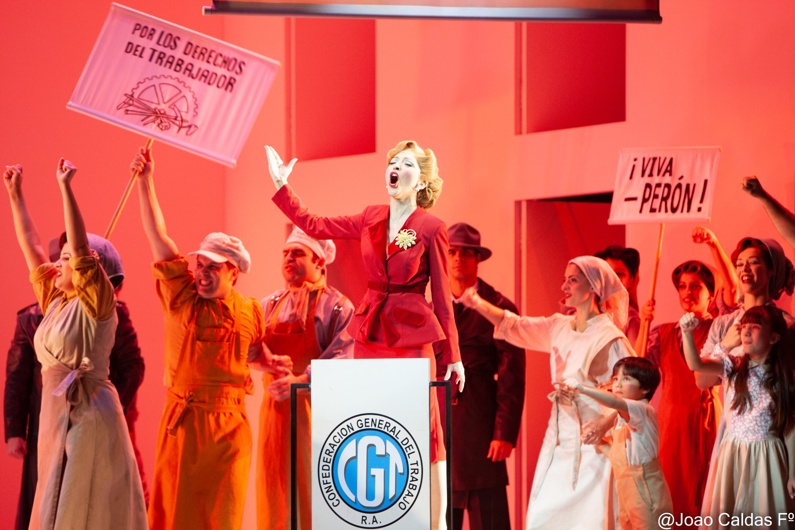 A superprodução conta a direção é de Jorge Takla – Para contar a fascinante história de Eva Perón e de seu marido Juan Perón, a peça leva ao palco 45 atores, orquestra com 22 músicos e 350 figurinos, com coreografias e projeções gigantes, a primeira montagem totalmente criada no Brasil, no Teatro Alfa/SP.